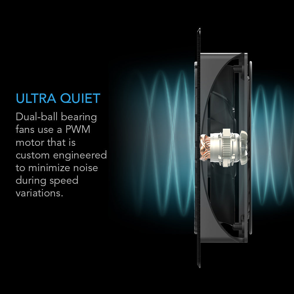 El sistema de ventilador ultra silencioso está diseñado para enfriar gabinetes de videos audio, teatros en casa y centros de entretenimiento. Cuenta con un cable de control y 6 pies de velocidad. Incluye ventiladores utilizan un motor personalizado diseñado para minimizar el ruido durante las variaciones de velocidad y están certificados por CE, TUV, UL y RoHS. Con doble rodamientos clasificados en 67.000 horas, la unidad puede montarse en cualquier dirección. Características de un CNC mecanizan marco de aluminio con un moderno acabado en negro pulido. Los aficionados se fijan para extraer el aire hacia fuera de la estructura pero esto puede revertirse a la entrada de aire con un destornillador. Incluye todo el hardware necesario para montar la unidad en un gabinete fácilmente y el poder que a través de un puerto USB o tomacorriente de pared estándar.