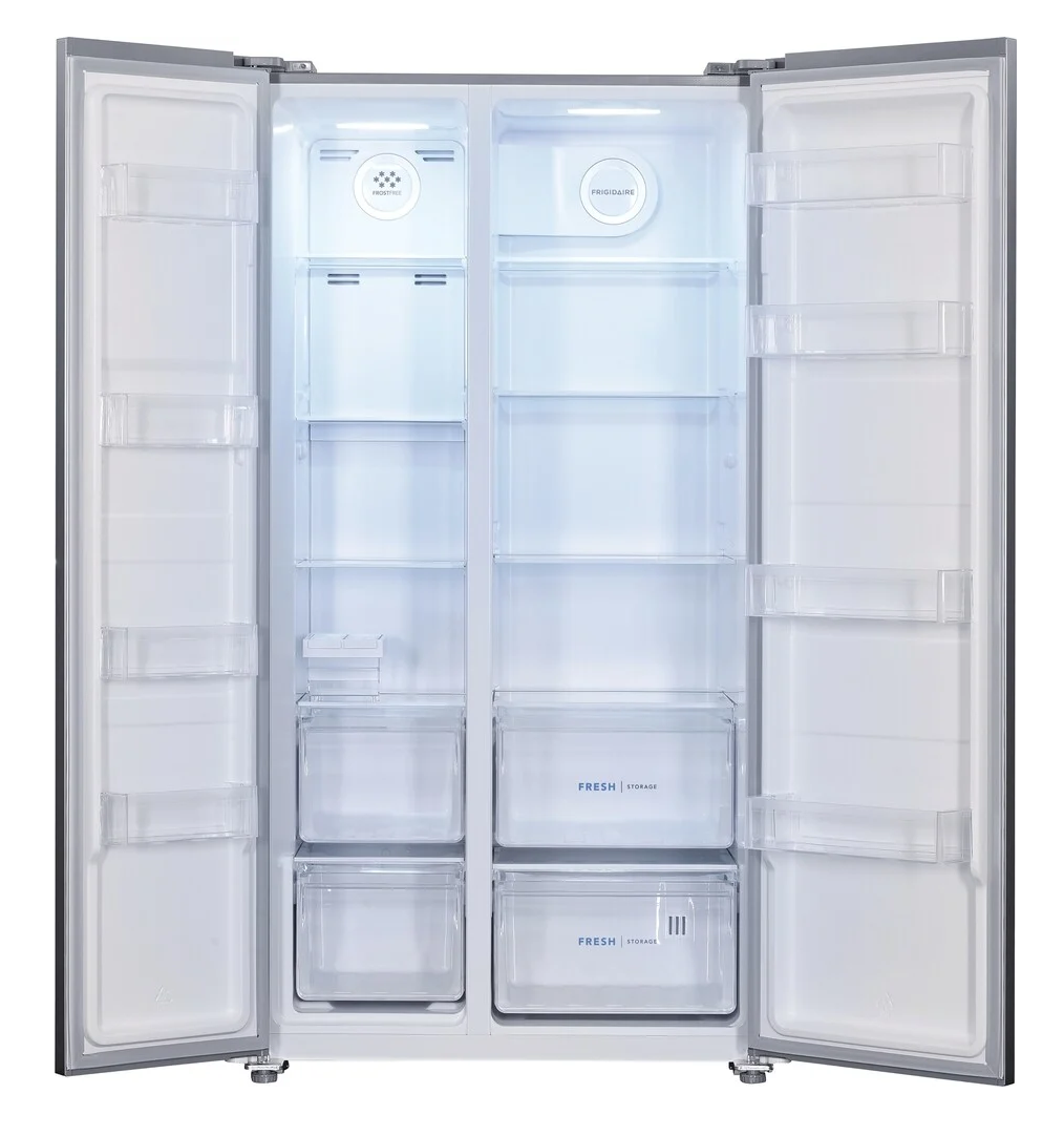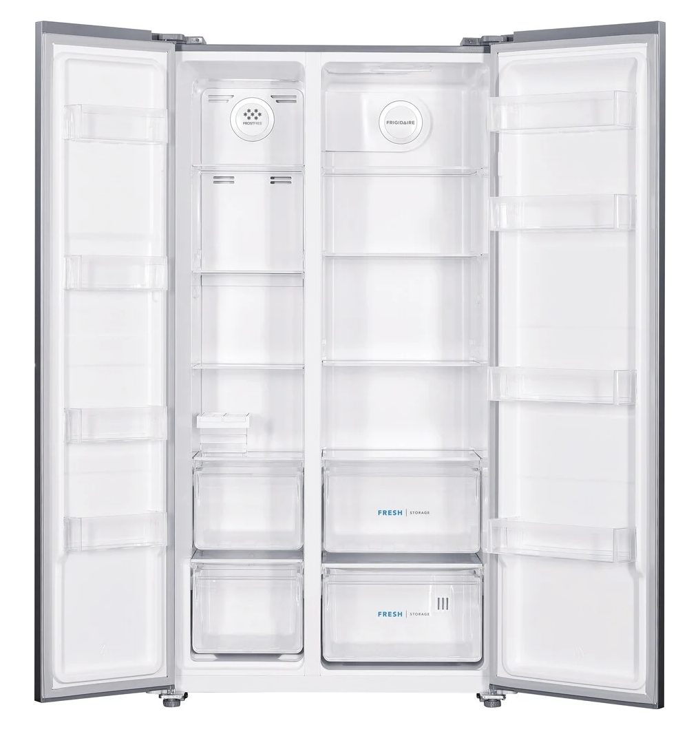 - El refrigerador de lado a lado con profundidad de mostrador de Frigidaire viene con 18.8 pies cúbicos. ft. Capacidad total para todas sus necesidades de refrigeración. También incluye
