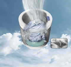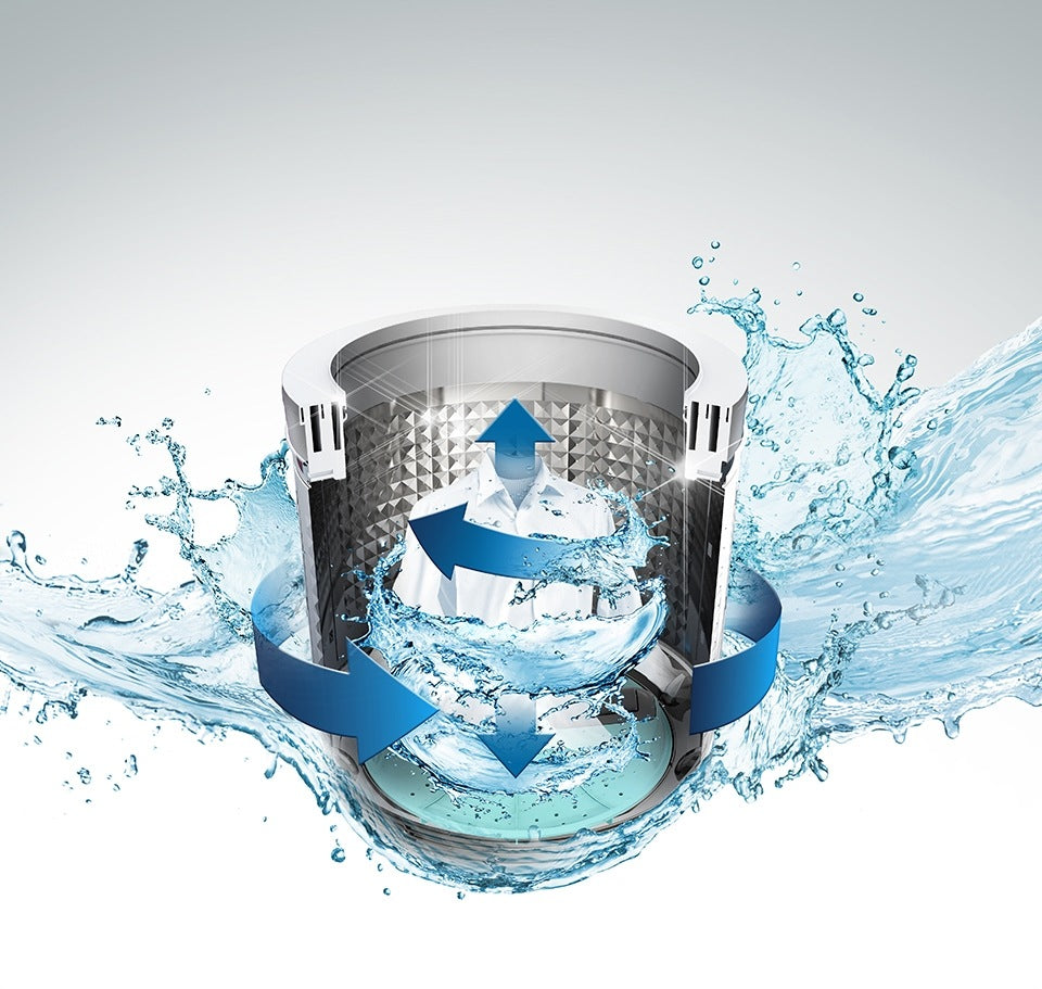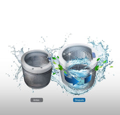 El Air Turbo Drying System de la lavadora de Samsung disminuye los tiempos de secado. Hace girar rápidamente el tambor de la lavadora para extraer más agua de la ropa, al tiempo que admite más aire para acelerar el proceso de secado. Todo lo anterior minimiza el tiempo necesario para secar la ropa.