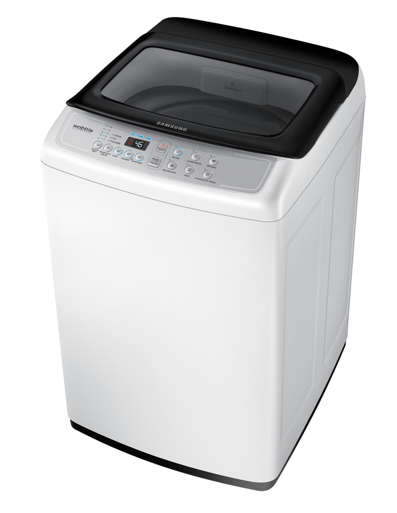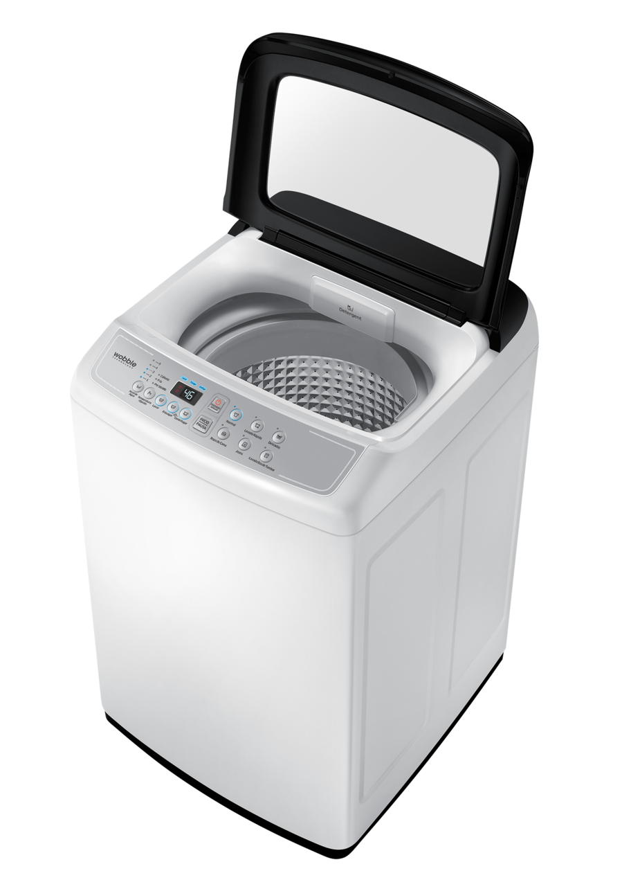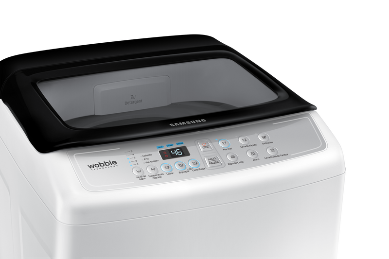 La innovadora tecnología Wobble de la lavadora de Samsung protege la ropa delicada del daño producido por la fricción, a la vez que demuestra su rendimiento extraordinario. La estructura sin igual de los pulsadores Wobble genera un flujo de lavado dinámico y multidireccional que minimiza los enredos y nudos, y limpia a fondo la ropa gracias a su capacidad antimanchas mejorada.