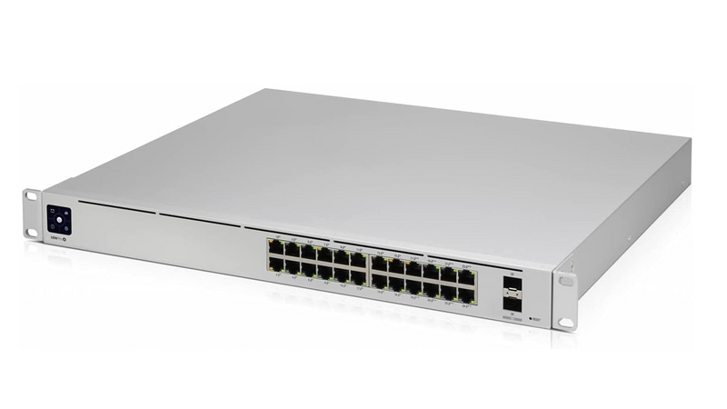 Conmutador de 24 puertos con (24) puertos Gigabit RJ45 y (2) puertos 10G SFP+. Potente conmutación UniFi de segunda generación, UniFi Switch Pro 24 es un conmutador de Capa 3 totalmente administrado con (24) puertos Gigabit Ethernet. (2) Los enlaces ascendentes 10G SFP+ ofrecen agregación de enlaces para mayor capacidad y mayor disponibilidad. El UniFi Switch Pro 24 presenta un amplio conjunto de capacidades de Capa 2 e integra funcionalidad de Capa 3, como enrutamiento entre VLAN, enrutamiento estático y servidor DHCP. El UniFi Switch Pro 24 es un conmutador de capa de acceso y agregación ideal para cualquier solución UniFi: combina una refrigeración innovadora casi silenciosa con la redundancia de energía UniFi SmartPower RPS. La aplicación UniFi Network y la aplicación móvil UniFi Network permiten a los administradores configurar y monitorear prácticamente todas las funciones del conmutador en una interfaz gráfica de usuario intuitiva desde cualquier lugar. (24) puertos Gigabit RJ45, (2) puertos 10G SFP+, funciones de Capa 2 y Capa 3 , Entrada de CC UniFi SmartPower RPS, Refrigeración casi silenciosa, Pantalla táctil de 1,3", Gestionado por la aplicación de red UniFi
