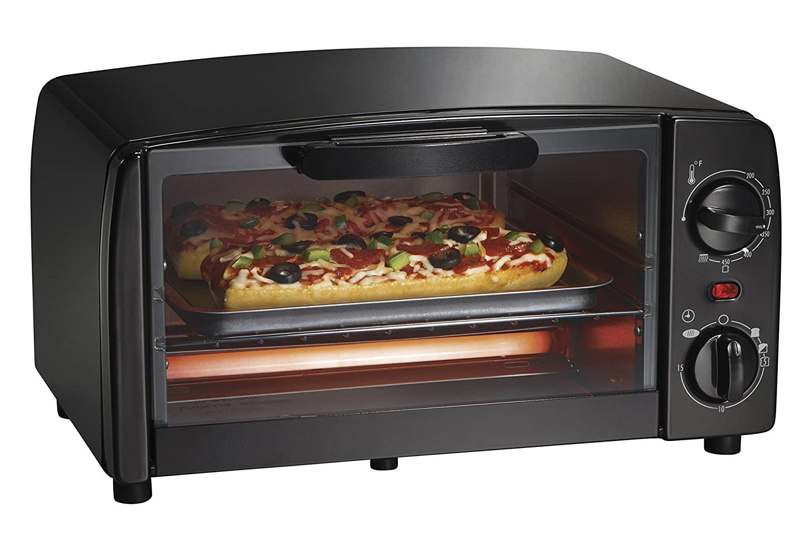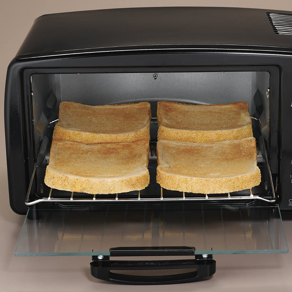- El interior extragrande se adapta fácilmente a 4 rebanadas de pan tostado o 2 pizzas personales.