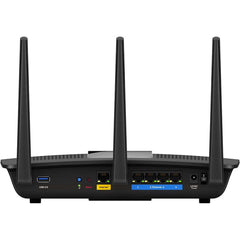 El Linksys MAX-STREAM AC1900 proporciona dos bandas Wi-Fi dedicadas con velocidades combinadas de hasta 1.9 Gbps, que es el doble del rendimiento de un banda única.