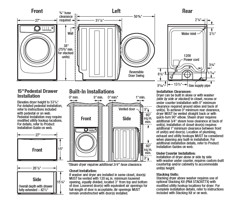 Enjoy easy loading no matter how your washer and dryer are configured.