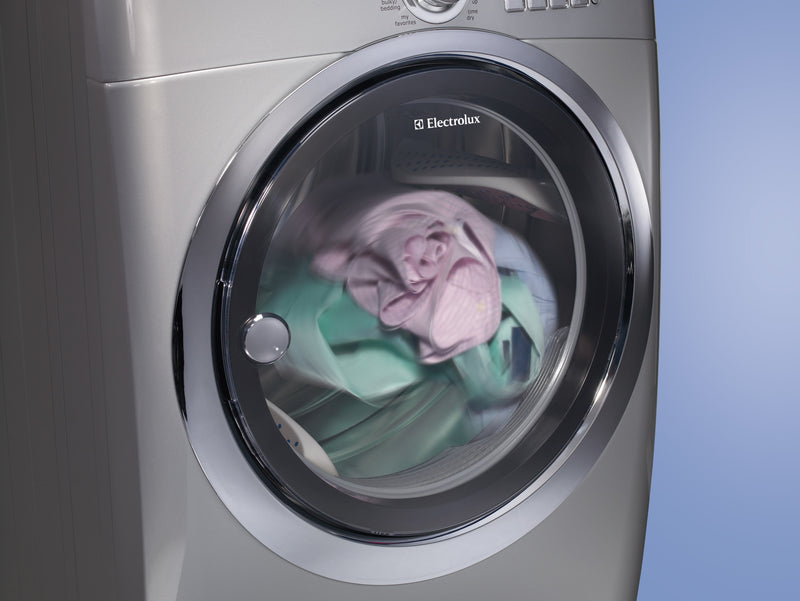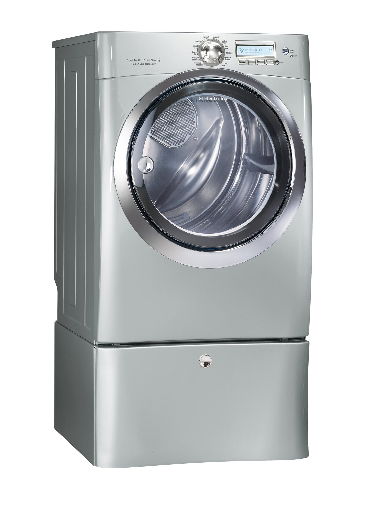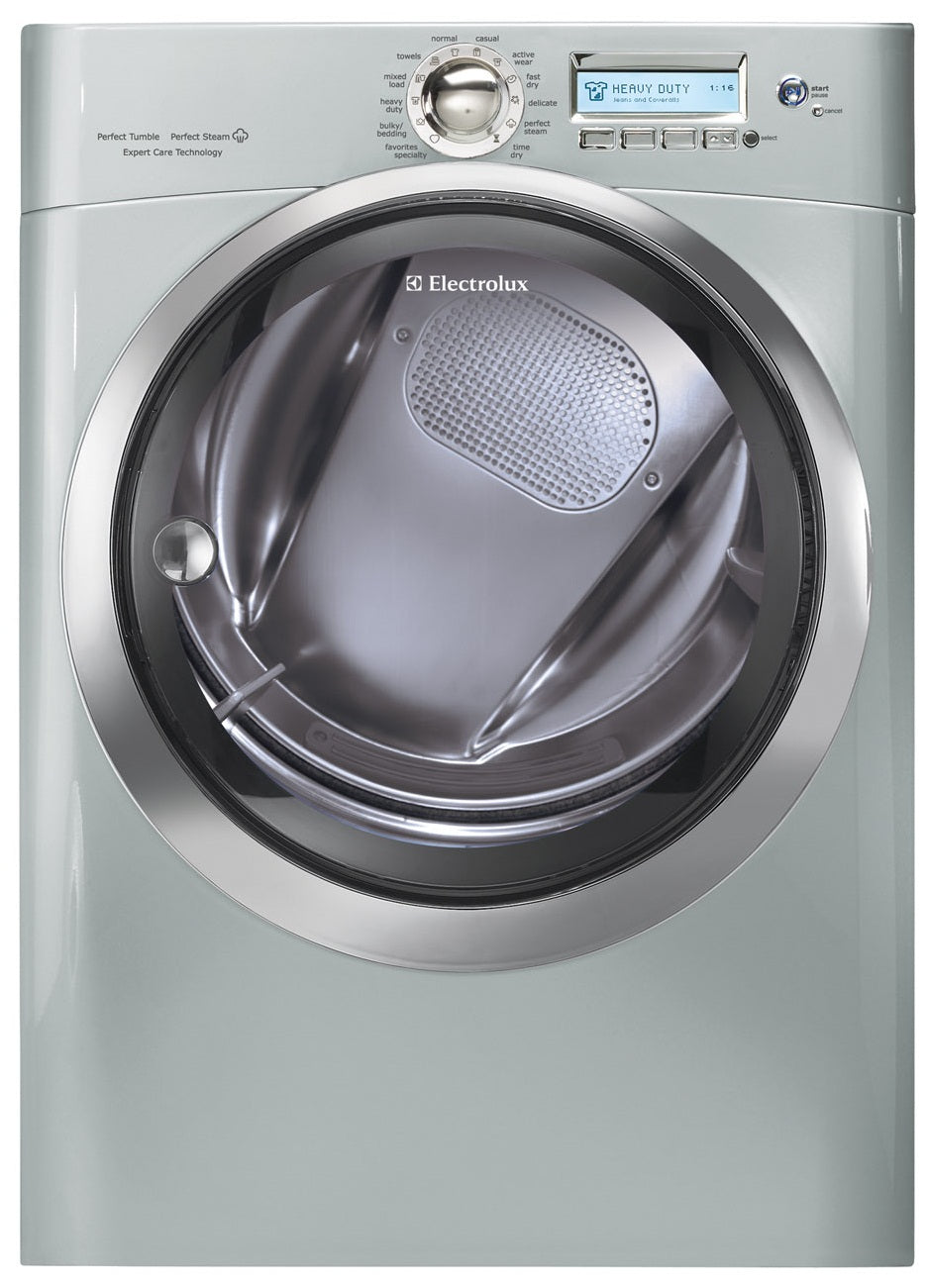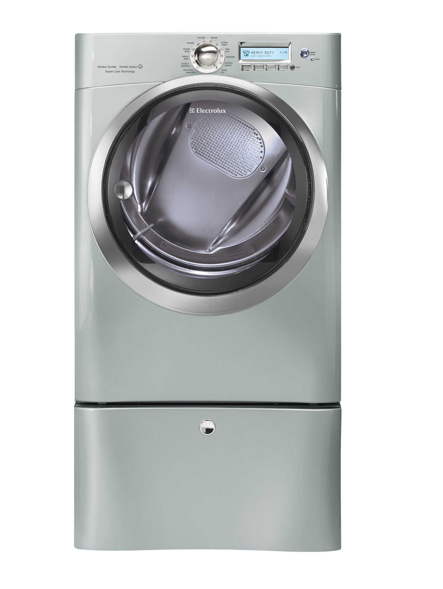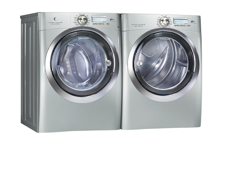 Secadora de carga frontal eléctrica de 27" con 8.0 pies cúbicos de capacidad, 92 ciclos totales de secado, Ciclos especiales, vapor perfecto, pantalla LCD y controles electrónicos Wave-Touch.