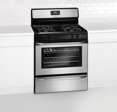 Estufa Independiente a gas de 30". Serie compuesta por 4 quemadores sellados, hornilla para cocinar a fuego lento, horno de 4.2 pies cúbicos de Capacidad, controles de selección y cajón calentador.