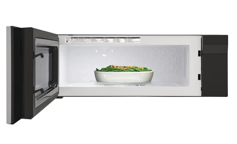 Maximice el espacio de la encimera con este Frigidaire Gallery 1.2 cu. ft. Microondas sobre la cocina de perfil bajo que reemplaza la campana debajo del gabinete sin sacrificar la capacidad interior. Sensor Cook, las opciones de cocción preestablecidas y Sensor Reheat ofrecen ahorro de tiempo para que pueda poner comidas deliciosas en la mesa en poco tiempo. La puerta de doble apertura ofrece dos formas sencillas de abrir la puerta: simplemente toque el ícono o abra la elegante manija oculta.