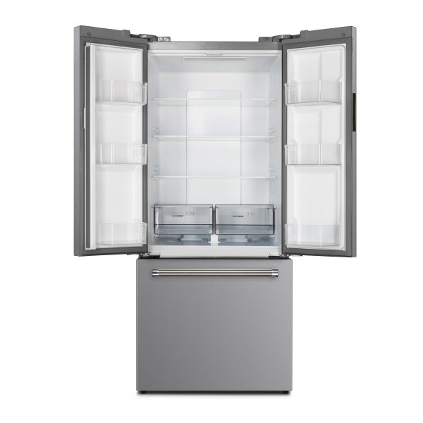 La nueva nevera INOX-18D3P de 500 litros/18 pies cúbicos combina estilo y funcionalidad. Con 3 puertas de acero inoxidable, diseño francés, y sistema inverter para eficiencia energética, esta nevera ofrece amplio espacio con bandejas de vidrio templado, 2 gavetas de refrigeración y 1 de congelación. El compresor tiene garantía de 10 años. Incluye huevera y bandejas para fabricar hielo manualmente, brindando conveniencia y durabilidad en un elegante electrodoméstico.