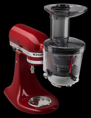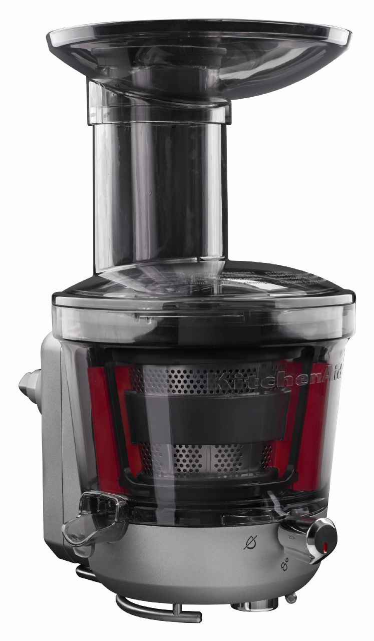 Abastecerse de frutas y vegetales para el uso diario con la KitchenAid exprimidor y salsa de accesorio que se conecta directamente a su batidora con base KitchenAid. Este accesorio exprimidor es un juicer lento (masticar) que corta primero entonces procesos suaves, duros o las frutas y verduras para la extracción de ricos en nutrientes. Con pulpa de 3 pantallas las opciones son infinitas para baja pulpa o jugos de pulpa alta, salsas y mermeladas.