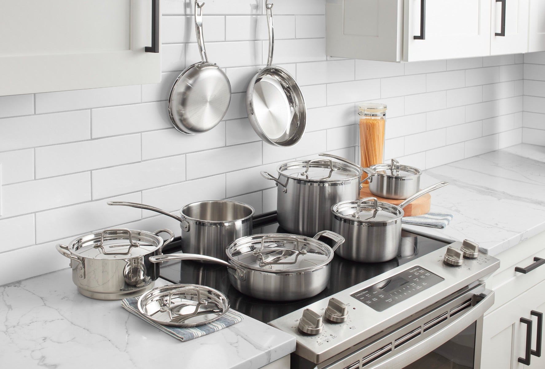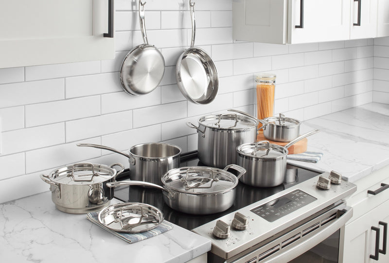 Las cocinas de Francia fueron la inspiración detrás de la elegante colección de utensilios de cocina de acero inoxidable Cuisinart® MultiClad Pro. Cuisinart® ha incluido todo lo que necesitas en este espectacular juego de 12 piezas para realizar a la perfección todas las tareas básicas de cocina, grandes o pequeñas. Desde recalentar una sola porción de sopa hasta preparar aperitivos, platos principales y guarniciones para toda la familia, encontrará todas las herramientas que necesita en este juego de lujo.