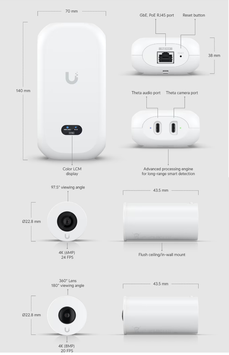 Sensor: UVC-AI-Theta-Lens: sensor CMOS de 8 MP, UVC-AI-Theta-Lens-360: sensor CMOS de 12 MP