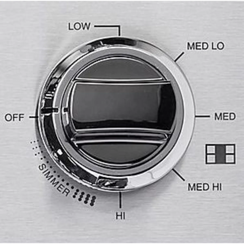 - La configuración de cocción lenta en todos los quemadores permite una salida baja de BTU para calentar salsas delicadas