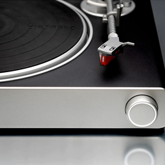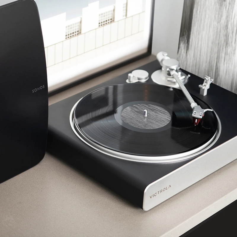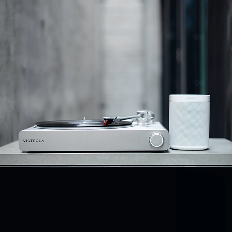 Certificado por el programa Works with Sonos, el tocadiscos manual de dos velocidades Stream Carbon para Sonos de Victrola puede conectarse sin problemas y transmitir audio de vinilo a su sistema de altavoces Sonos existente a través de una conexión Wi-Fi 5 (802.11ac) o Ethernet. La configuración es fácil con la aplicación Victrola Stream (iOS/Android), pero si no tiene una configuración de Sonos, aún puede usar el tocadiscos con su equipo existente a través de la salida RCA. Cuando está configurado, el Stream Carbon le da a su espacio un tocadiscos elegante y moderno con componentes de alta fidelidad para un sonido de vinilo dinámico y claro. El Stream Carbon se opera manualmente y el motor accionado por correa admite registros de 33 1/3 y 45 rpm.